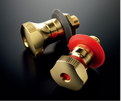 The speaker terminals are the final link in the audio chain of this amplifier, and have also been designed with meticulous obsession. They are screw-type terminals with large handles featuring an original design, and have been crafted by cutting pure brass to enable a secure connection with no reduction in sound quality. Moreover, the shape conforms nicely to the human fingers—not only creating an elegant visual impression, but also allowing users to turn them easily and to firmly tighten them with minimal force.