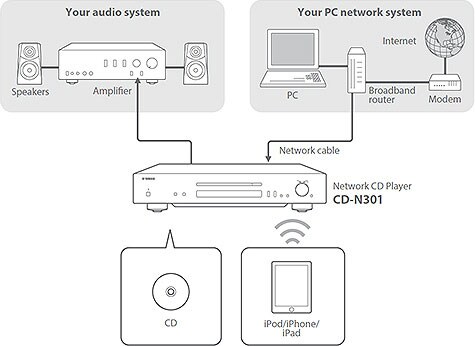 The CD-N301 Network CD Player has virtually all of your music playback bases covered. This includes full compatibility with AirPlay—which means you get the convenience of wireless music playback from your Mac, iPod, iPhone or iPad, as well as from a PC.