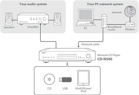 The CD-N500 is a CD player and network audio player in a single unit. In addition to your own CDs, it's simple to play audio sources downloaded from the Internet and stored on a PC or NAS system. And the special NP Controller application allows you to enjoy your favorite tunes on a smartphone or tablet device via wireless connection.