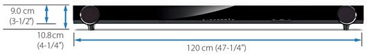 With a height of only 10.8 cm (4-1/4”), the soundbar can be easily positioned in front of a TV so it straddles the TV stand. With the stand removed, the height can be adjusted.
