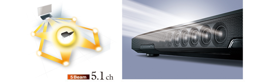 - Digital Sound Projector technology with eight array speakers reproduces true 5.1ch surround sound