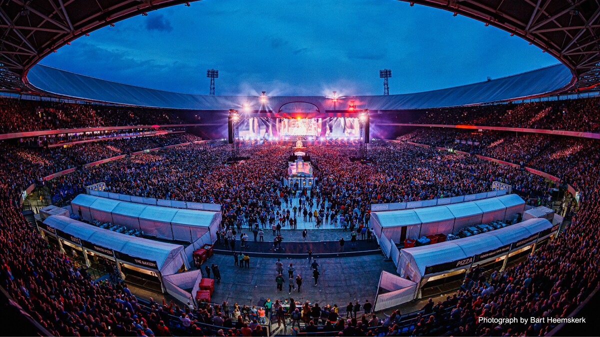 In late May and early June, Dutch superstar Marco Borsato became the first artist to play five sold-out stadium shows at De Kuip, home of Feyenoord Rotterdam football club. A Yamaha RIVAGE PM7 digital mixing system helped ensure that Marco, his band and an array of guest vocalists gave a quarter of a million fans an unforgettable experience.