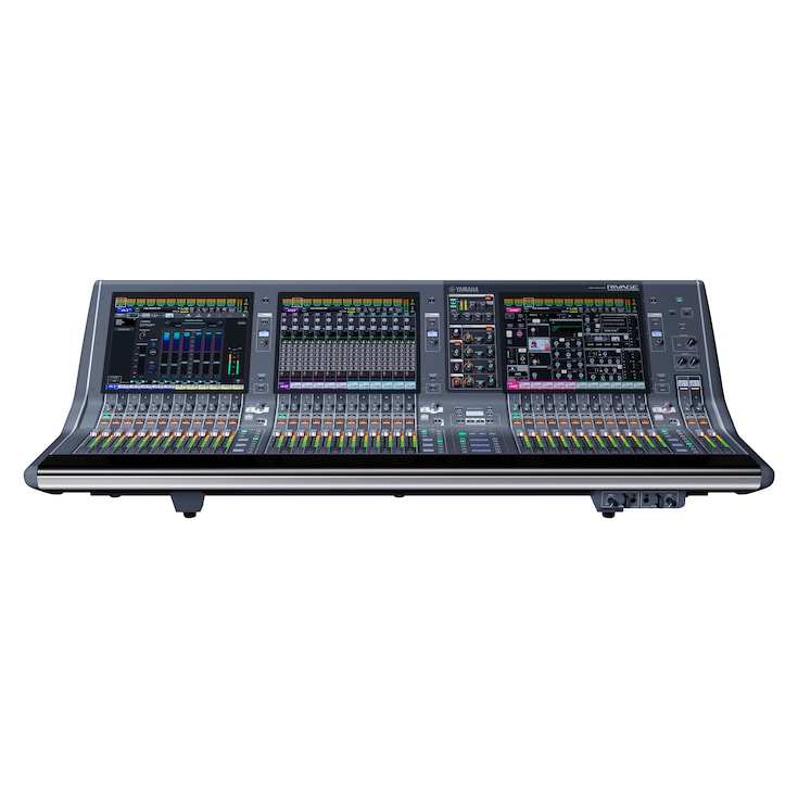 The CS-R5 control surface is the core component of RIVAGE PM5 system, with 96 kHz processing. The console has three touch screen and 12-faders bays for flexible setup and configuration.Touch panels are brought closer to the user, making them easier to reach. The weight is 42kg which is incredibly light.
