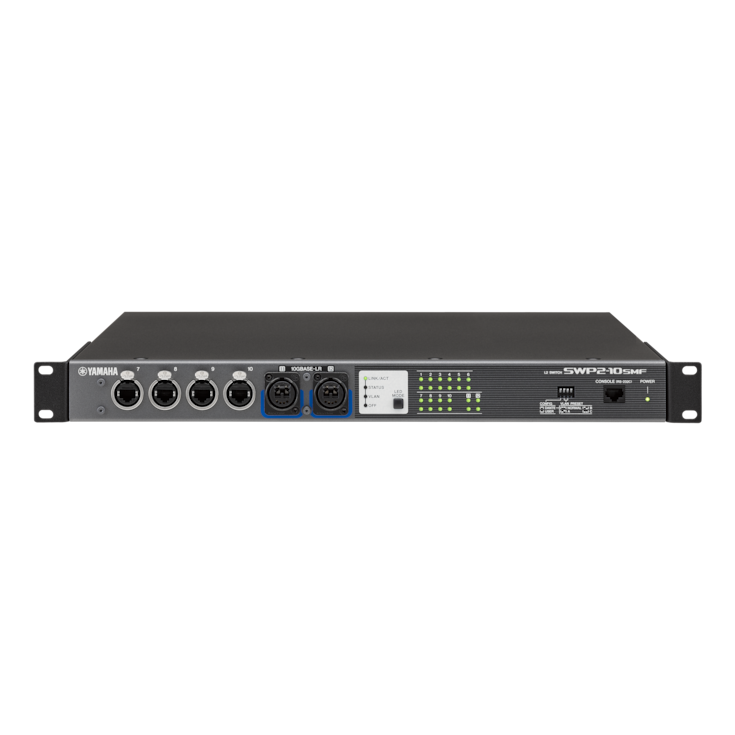 The SWP1 series L2 switch is ideal for Dante network systems. It features eight etherCON ports and option slots for two more ports as needed.