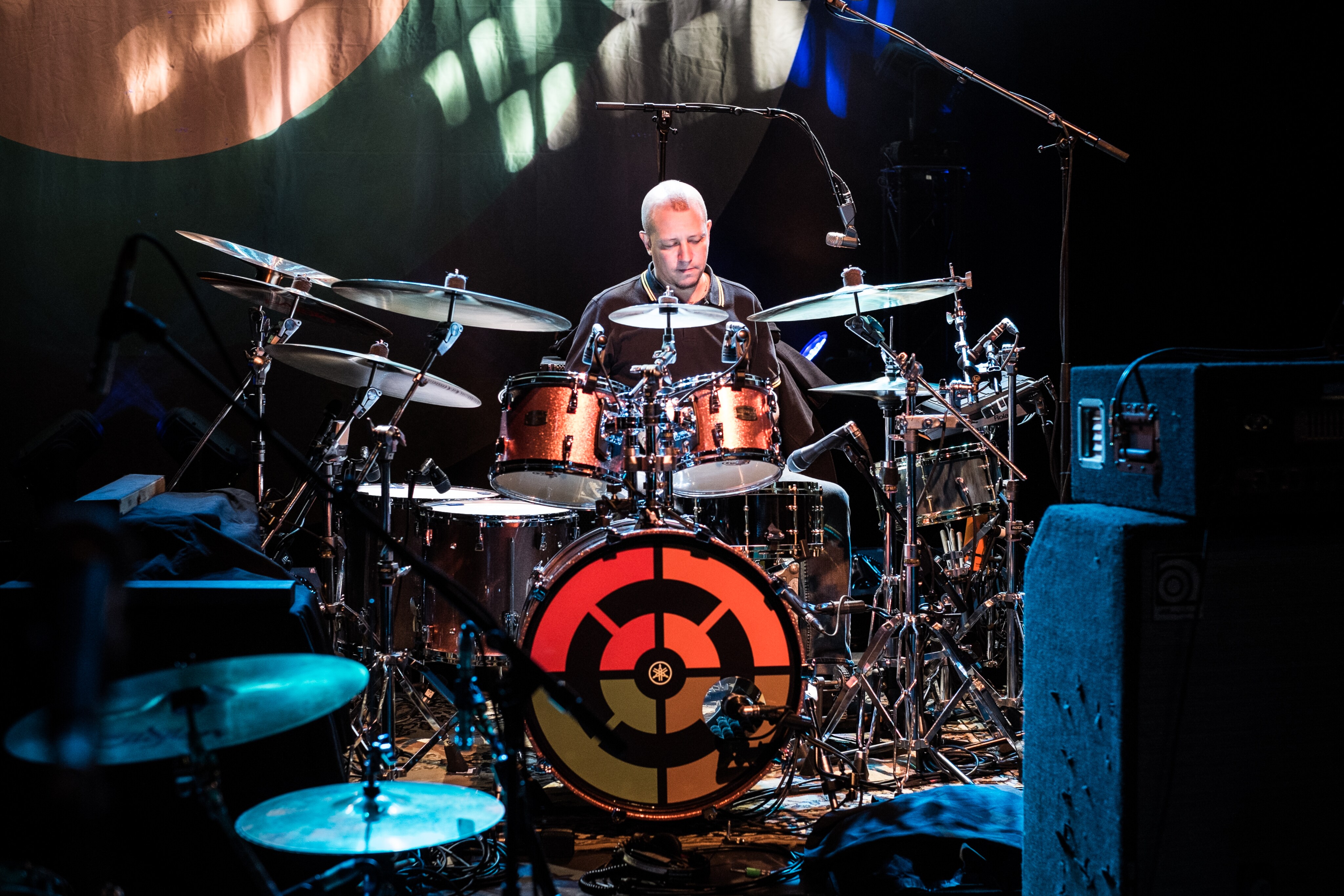 His current touring setup is Absolute Hybrid Maple in Pink Champagne Sparkle.