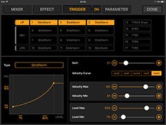 Visually edit Volume Balance, PAN, and Effect Send for each pad.
