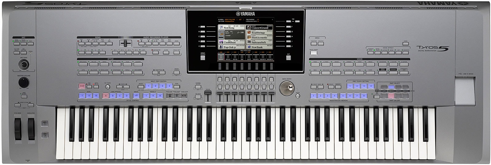 In Tyros5 Yamaha has created the ultimate performance keyboard, with outstanding sounds, enhanced DSP effects, and accompaniment Styles so real it's like being backed by the world’s finest musicians. The Tyros5 brings a level of authenticity like no instrument before it.