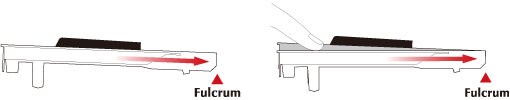 The keys on a Clavinova are constructed so that the fulcrum is as far from the key tip as possible. This improves playability and comfort, especially when pressing at the back of the key. This construction provides good key travel, even when performing pieces played mainly on the black keys and the backs of the white keys, allowing nuanced variations in touch and broadening your expressive range.