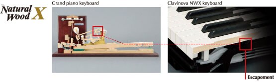 The NWX keyboards also feature an escapement mechanism that reproduces a slight clicking sensation near the bottom of the key dip, and they have been designed in such a way that the click is discernible only on the lightest keystrokes, similar to the keyboard of a grand piano.