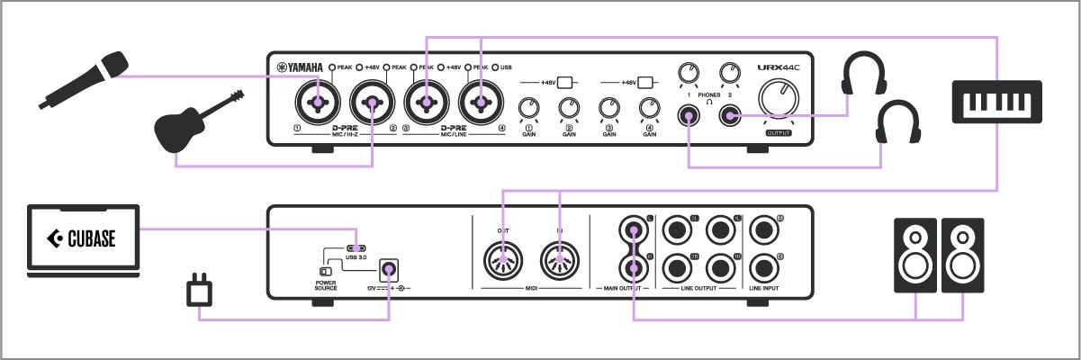 Equipped with 32-bit/192 kHz audio resolution and Yamaha’s D-PRE mic preamps, the URX44C delivers exceptional clarity and depth.