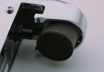 Small footprint and soft material for the head contact does not impede the acoustic drum sound